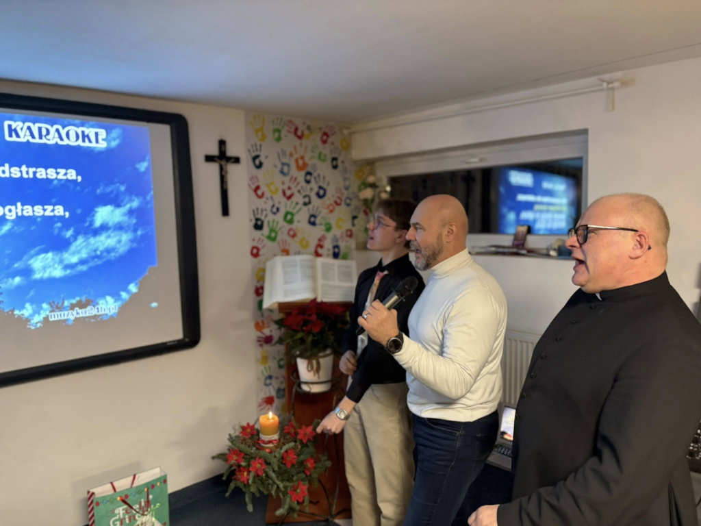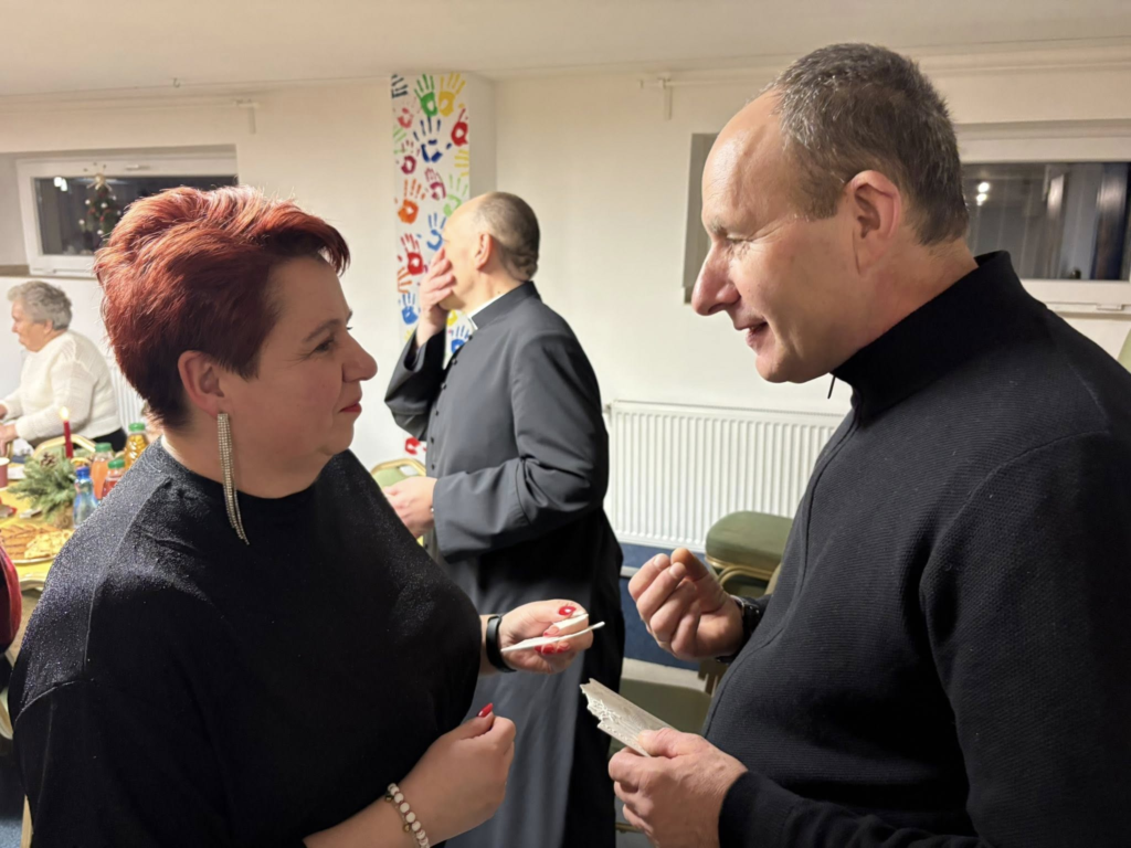 W ostatnią niedzielę roku odbył się „opłatek” dla wszystkich grup parafialnych. Po odczytaniu Ewangelii i słowach ks. proboszcza Jacka, przełamując się „białym chlebem”, składaliśmy sobie świąteczne i noworoczne życzenia. Następnie usiedliśmy przy bogato zastawionych stołach i wspólnie śpiewaliśmy kolędy… Niektórzy odważyli się zaśpiewać „solo”.