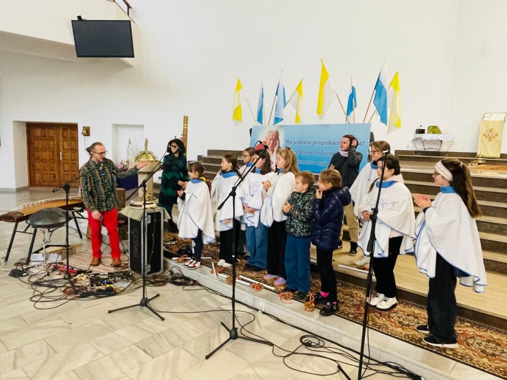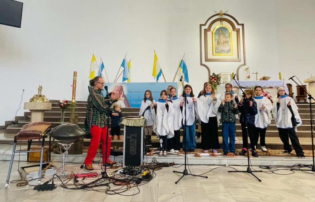 Po Mszy Świętej o godz. 10.00, uczestnicy warsztatów zaprezentowali swoje zdolności wokalne oraz instrumenty.