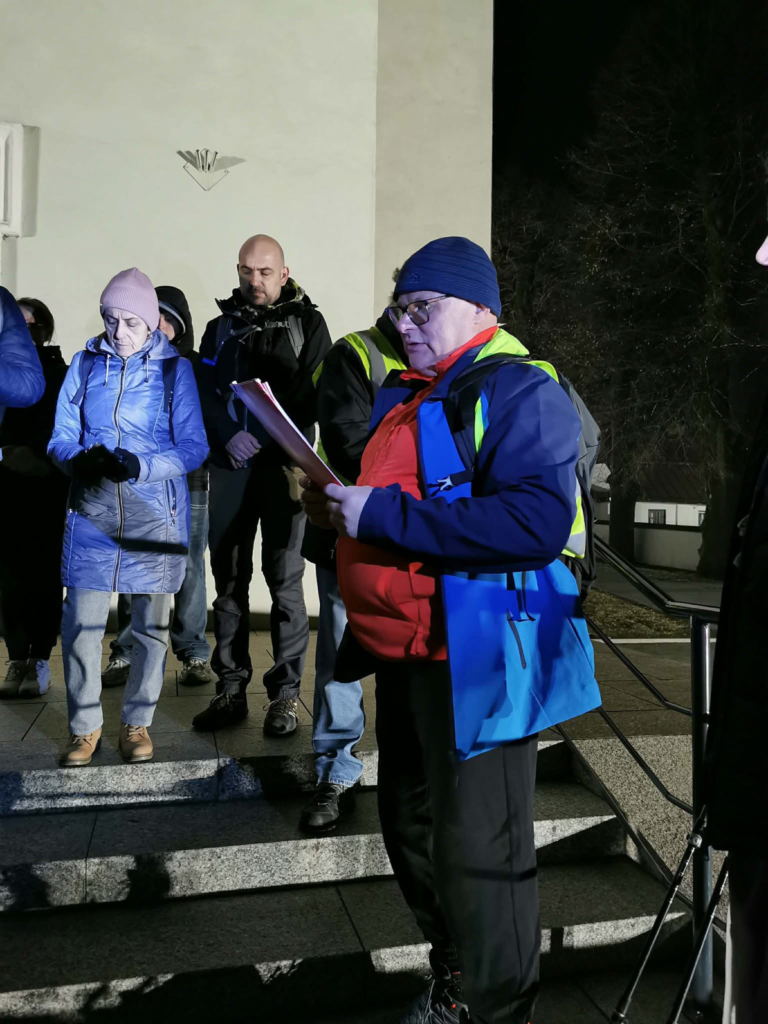 Naszą wspólną wędrówkę zakończyliśmy pod kościołem – nieco zmęczeni, ale szczęśliwi. Dziękujemy Paweł Skalik za wyznaczenie trasy oraz Igor Zębik za przygotowanie rozważań.