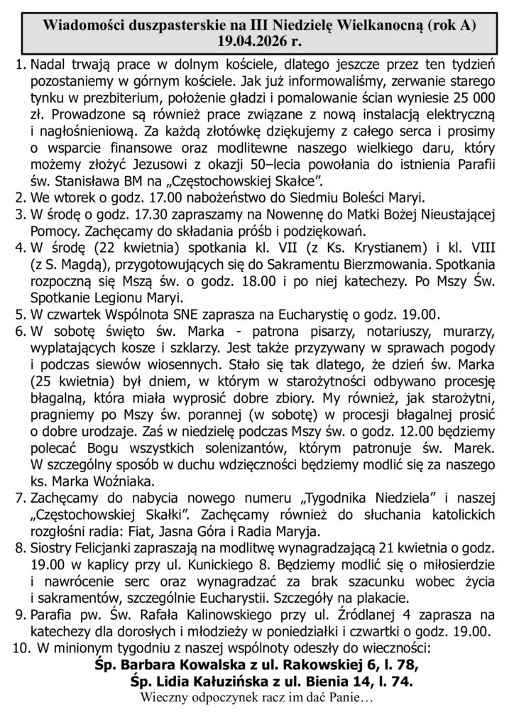 Rzymskokatolicka Parafia pw. Św. Stanisława BM w Częstochowie